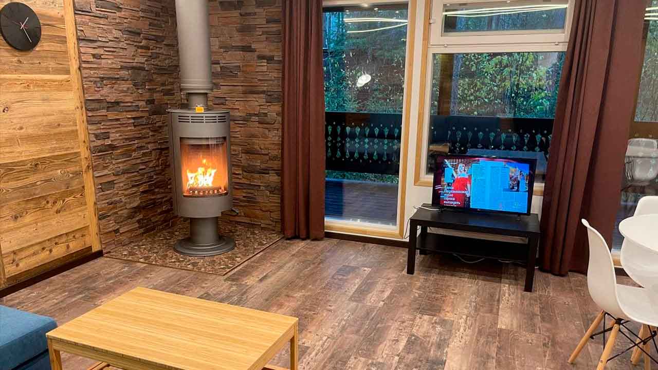 Шале с отдельной спальней и видом на лес отлично подходит для семей с подросшими детьми.  Планировка продумана таким образом что позволяет комфотно проживать в разных комнатах и пользоваться санузлом не опасаясь что можно побеспокоить ваших близких в соседней комнате.
