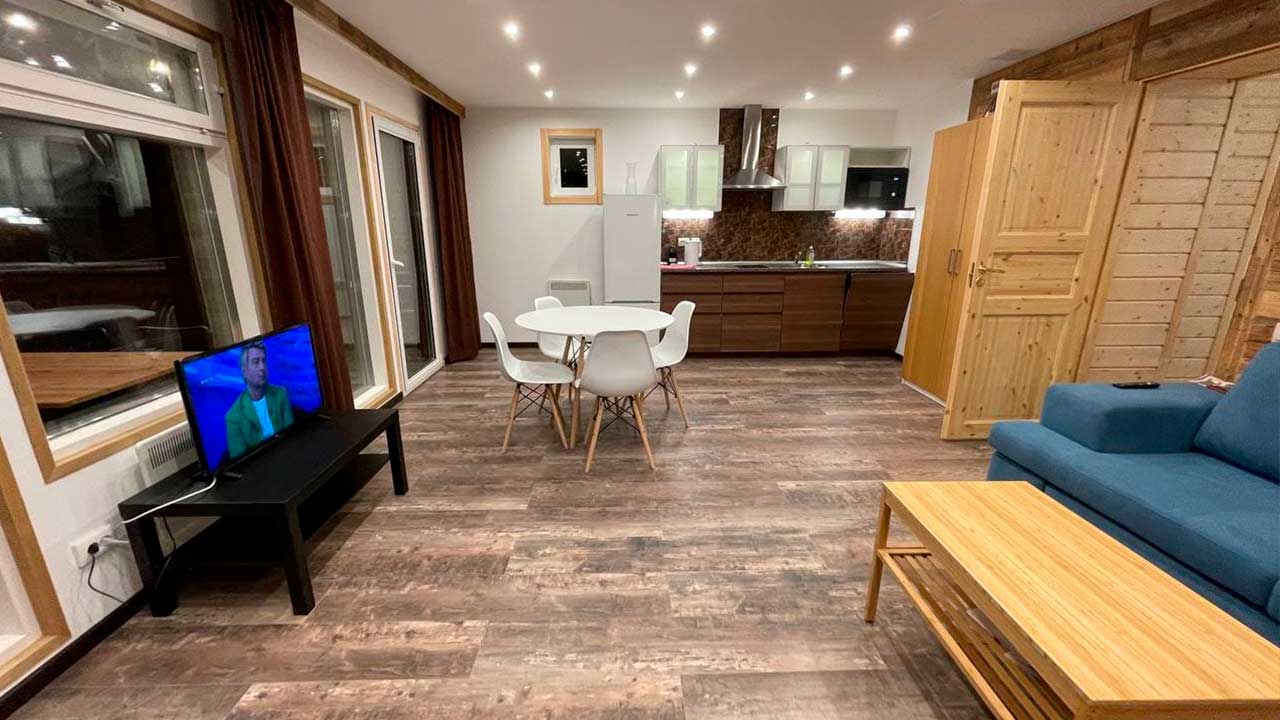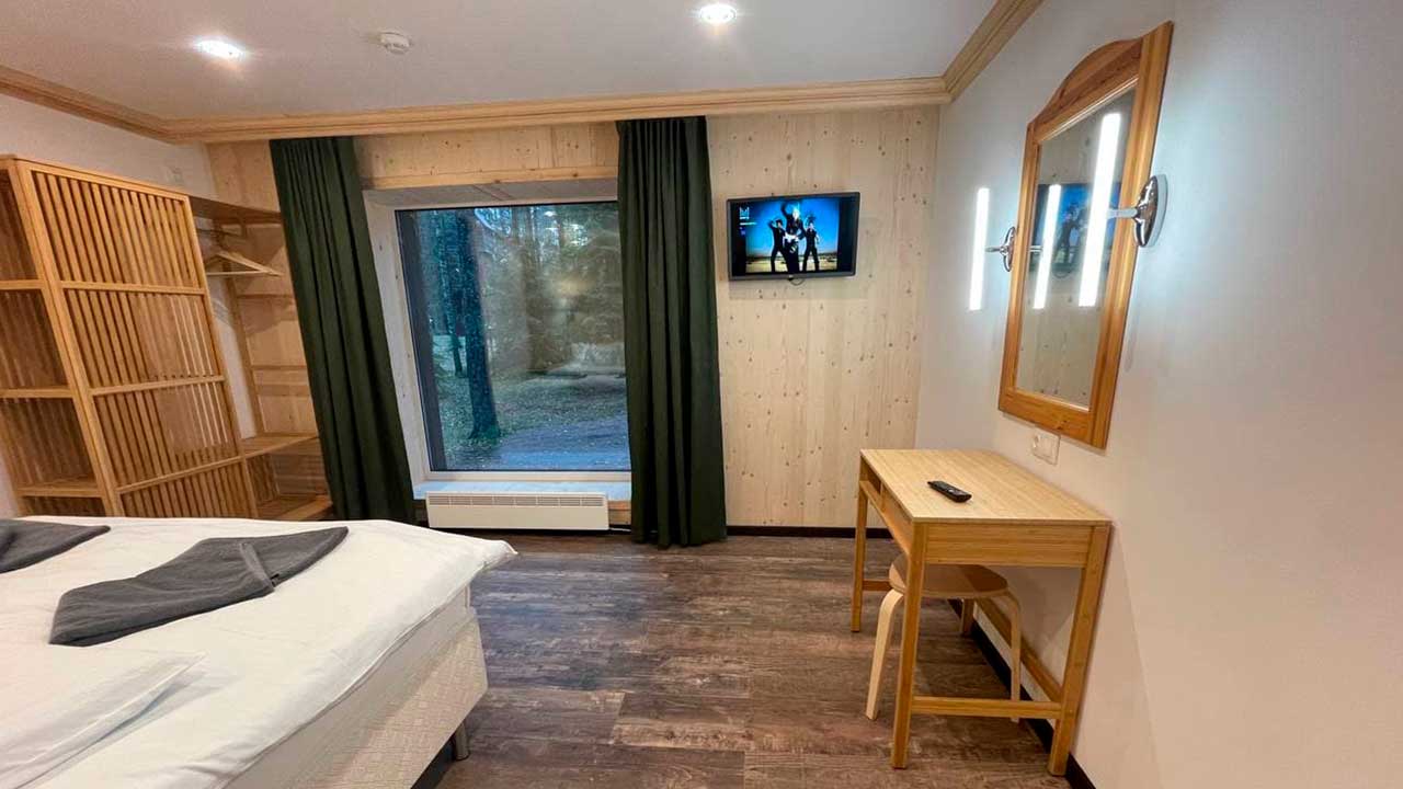 Шале с отдельной спальней и видом на лес отлично подходит для семей с подросшими детьми.  Планировка продумана таким образом что позволяет комфотно проживать в разных комнатах и пользоваться санузлом не опасаясь что можно побеспокоить ваших близких в соседней комнате.